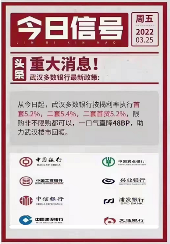 3月25日,武汉发布了最新的房贷利率消息,3月26日0时起,对新签约的按揭贷款首套房利率进行调整: